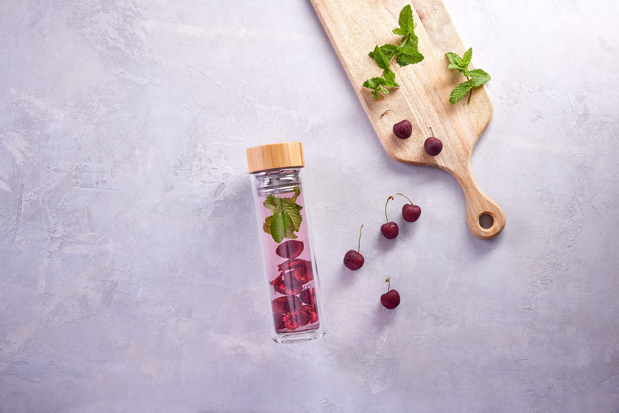 Cherry and Mint Infused Fruit Water