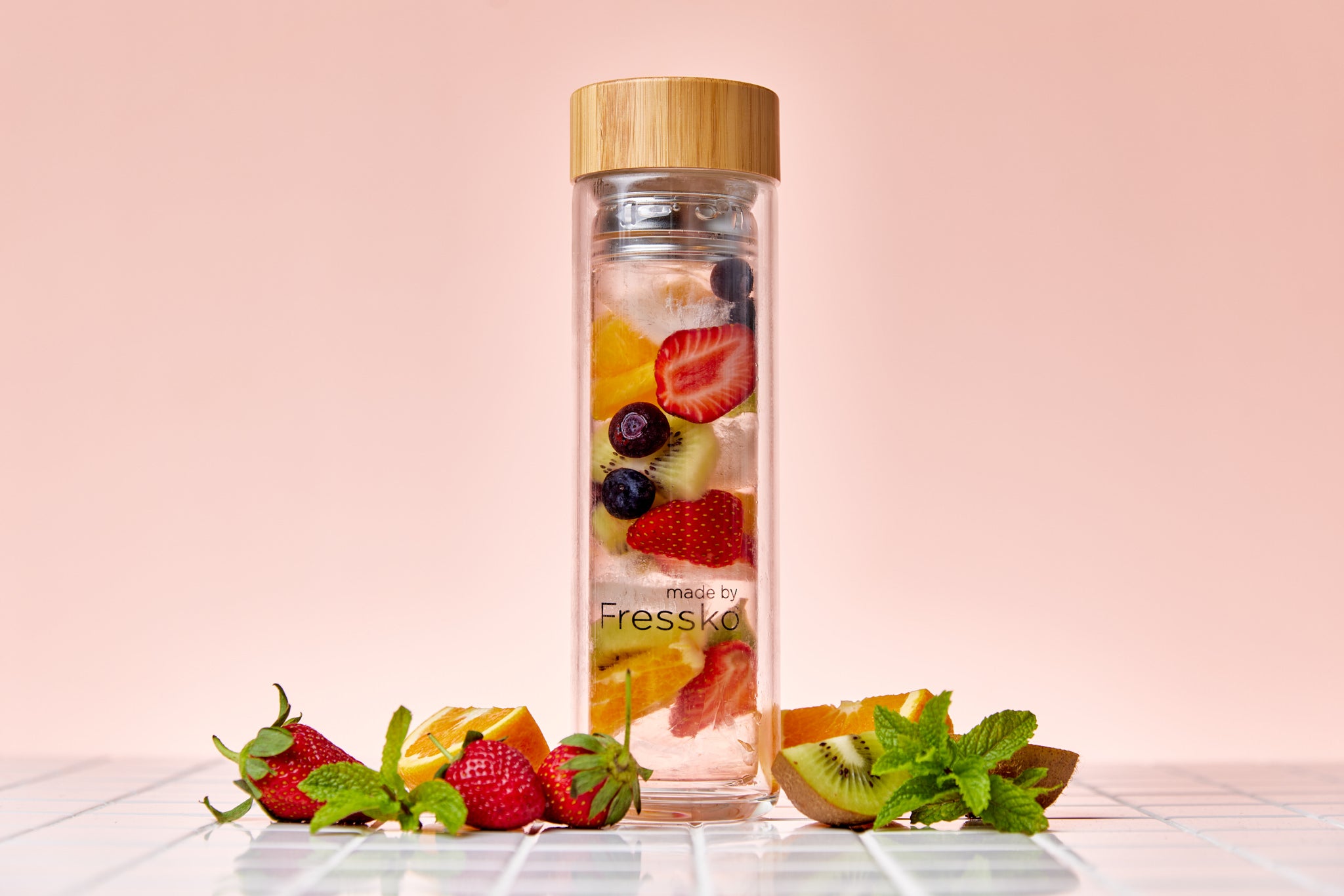 Insert the top attachment of the tea infuser to hold in contents as you drink.