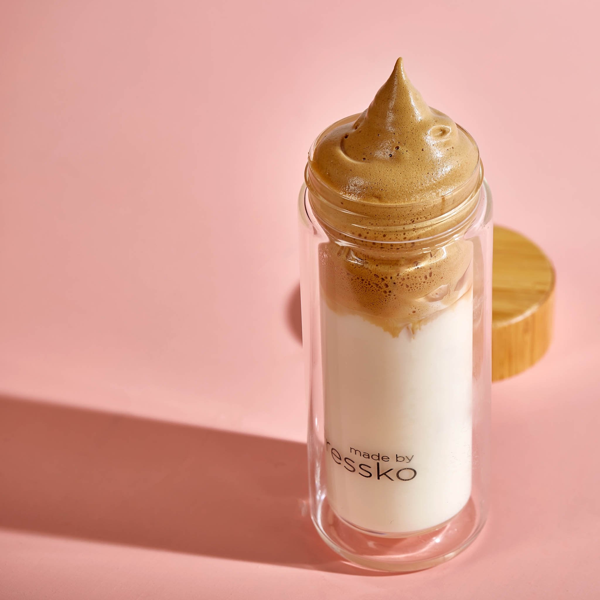 Using an electric mixer or hand held whisk, whisk until it becomes thick, shiny, fluffy and foamy.